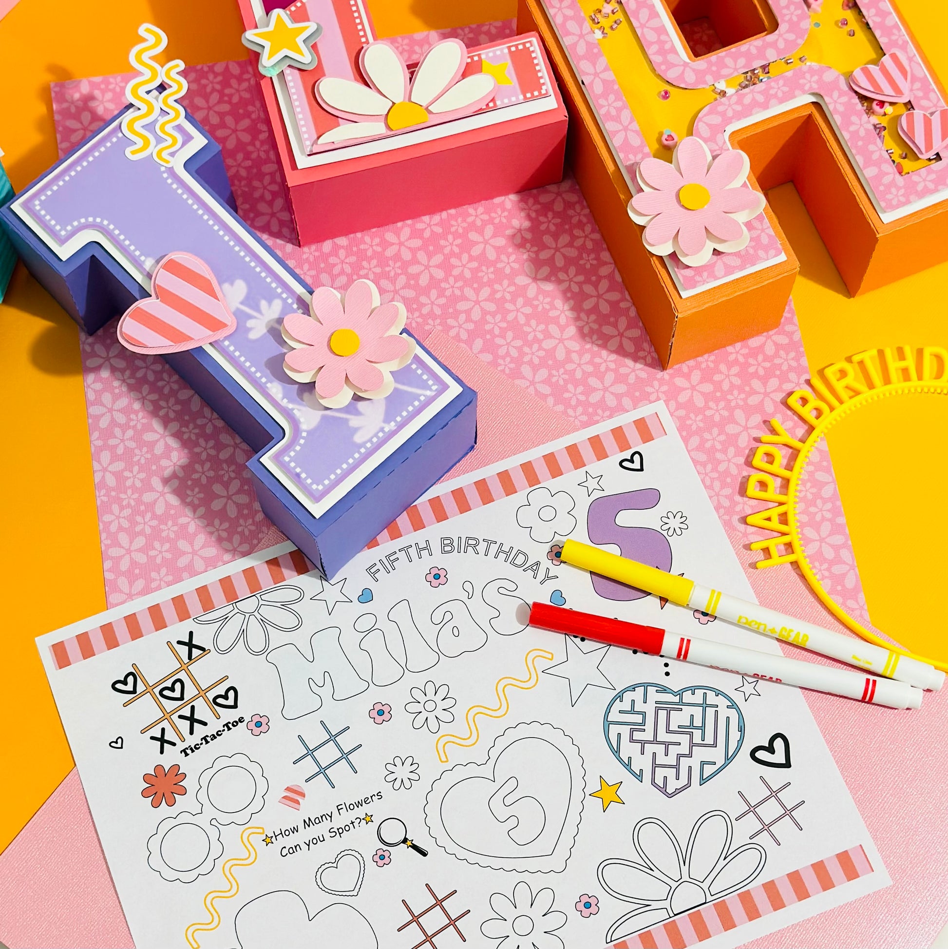 Transform your party into a stunning celebration with our Groovy Girl Birthday set! Vibrant colors and beautiful designs make this theme perfect for any groovy girl. Wow your guests with our 3D letter centerpiece and add a touch of unique flair with our favor boxes and our custom drawing sheets. Let the grooviness begin!